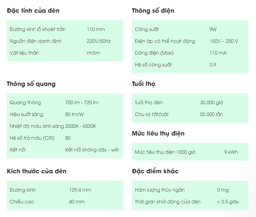 - Thay đổi độ sáng từ 10 - 100%, thay đổi nhiệt độ màu từ 3000K đến 6500K