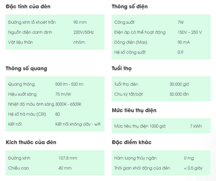 - Thay đổi độ sáng từ 10 - 100%, thay đổi nhiệt độ màu từ 3000K đến 6500K