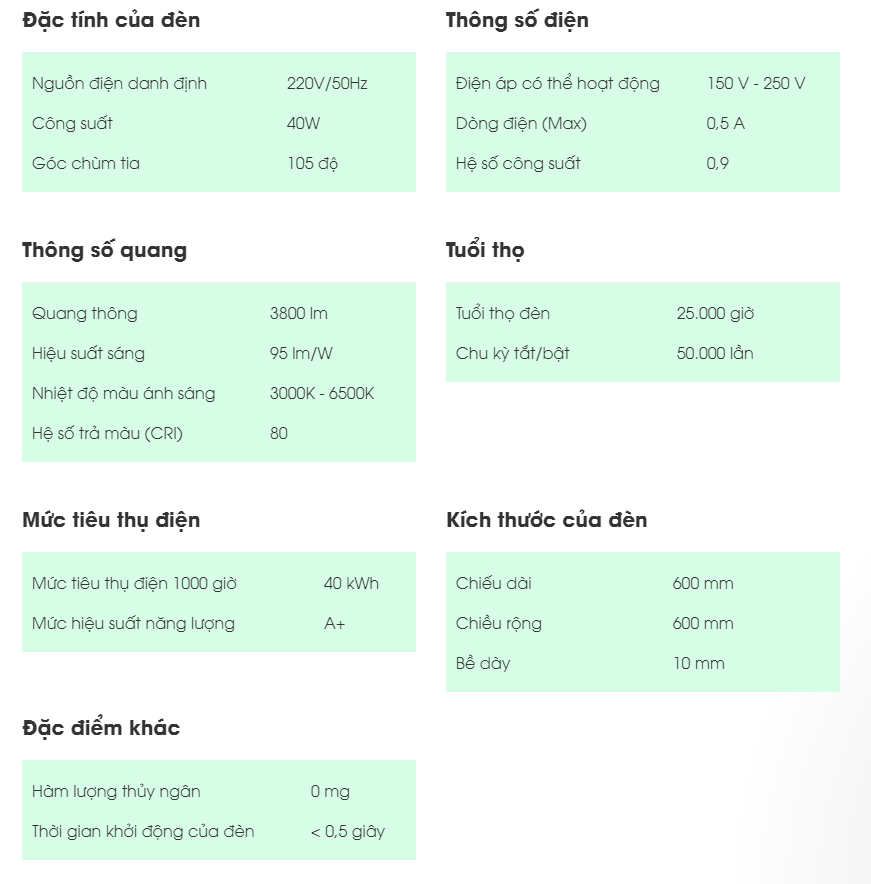- Thay đổi độ sáng từ 10 - 100%, thay đổi nhiệt độ màu từ 3000K đến 6500K