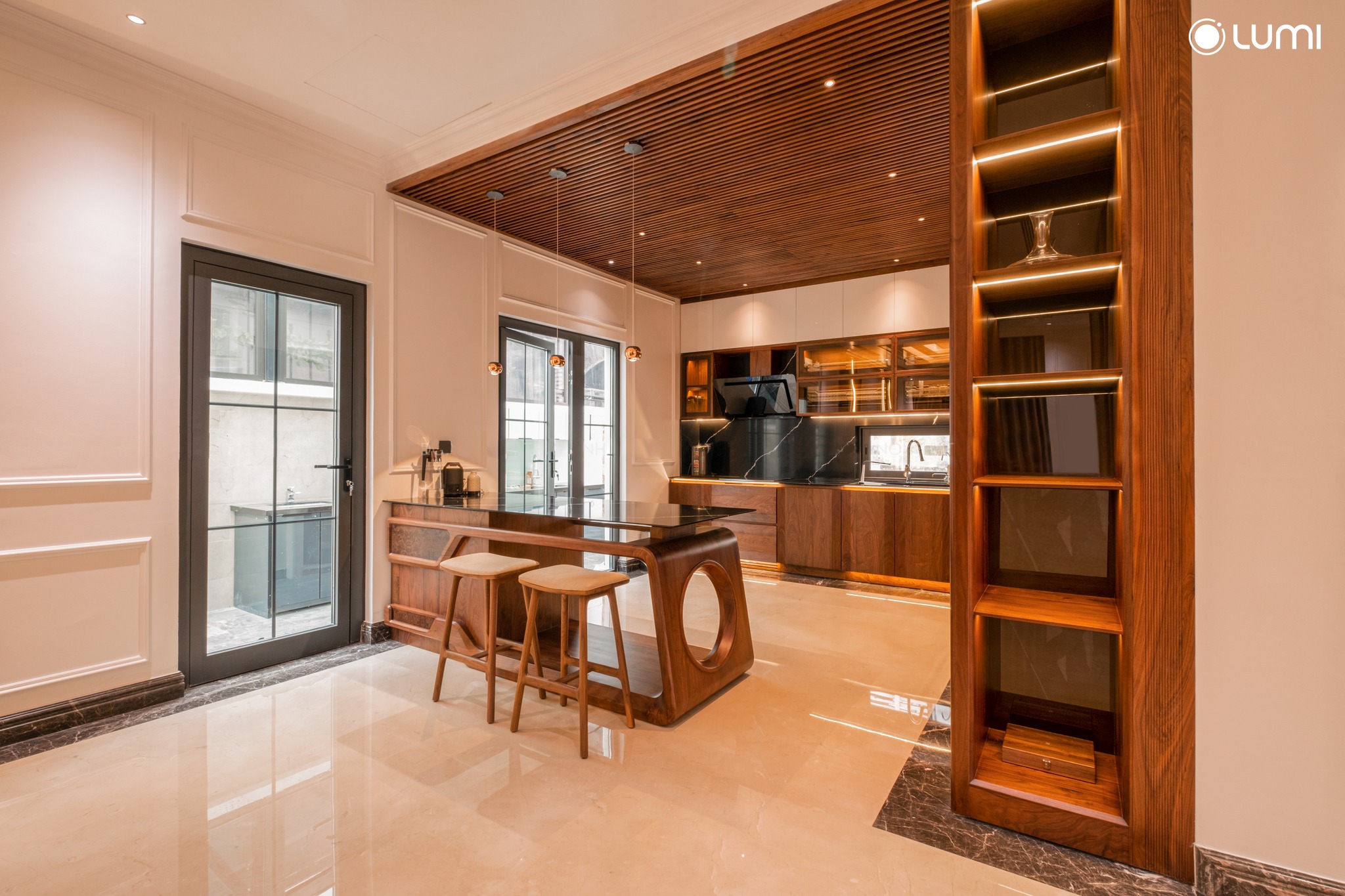 Không chỉ gây ấn tượng bởi vẻ trang hoàng, độc đáo qua nét cổ điển pha lẫn hiện đại trong thiết kế, căn biệt thự 360m2 còn trở nên đặc biệt hơn khi được trang bị toàn bộ giải pháp nhà thông minh Lumi và thiết kế chiếu sáng chuyên nghiệp từ Lumi Lighting.