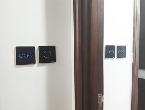 Anh Vinh lựa chọn công tắc cảm ứng vuông viền nhôm với màu đen rất tinh tế sang trọng