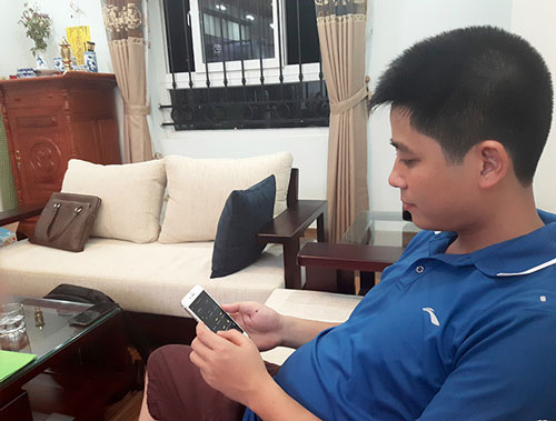 Anh Vinh hào hứng điều khiển thiết bị chiếu sáng ngay từ điện thoại thông minh