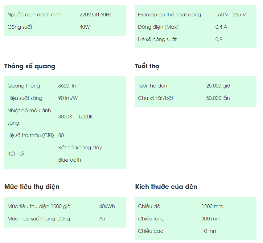 - Kết nối không dây: BLE - Điều khiển từ xa thông qua internet - Thay đổi độ sáng từ 10 - 100%, thay đổi nhiệt độ màu từ 3000K đến 6500K - Có khả năng điều khiển theo kịch bản và theo thời gian thực - Phần mềm điều khiển cài đặt trên...