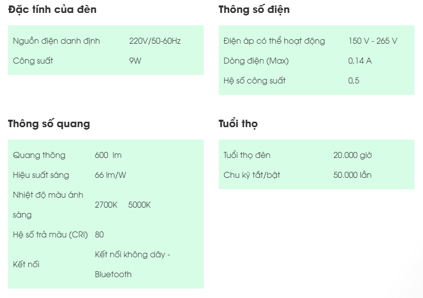 - Kết nối không dây: BLE - Điều khiển từ xa thông qua internet - Thay đổi độ sáng từ 10 - 100%, thay đổi nhiệt độ màu từ 3000K đến 6500K - Có khả năng điều khiển theo kịch bản và theo thời gian thực - Phần mềm điều khiển cài đặt trên...