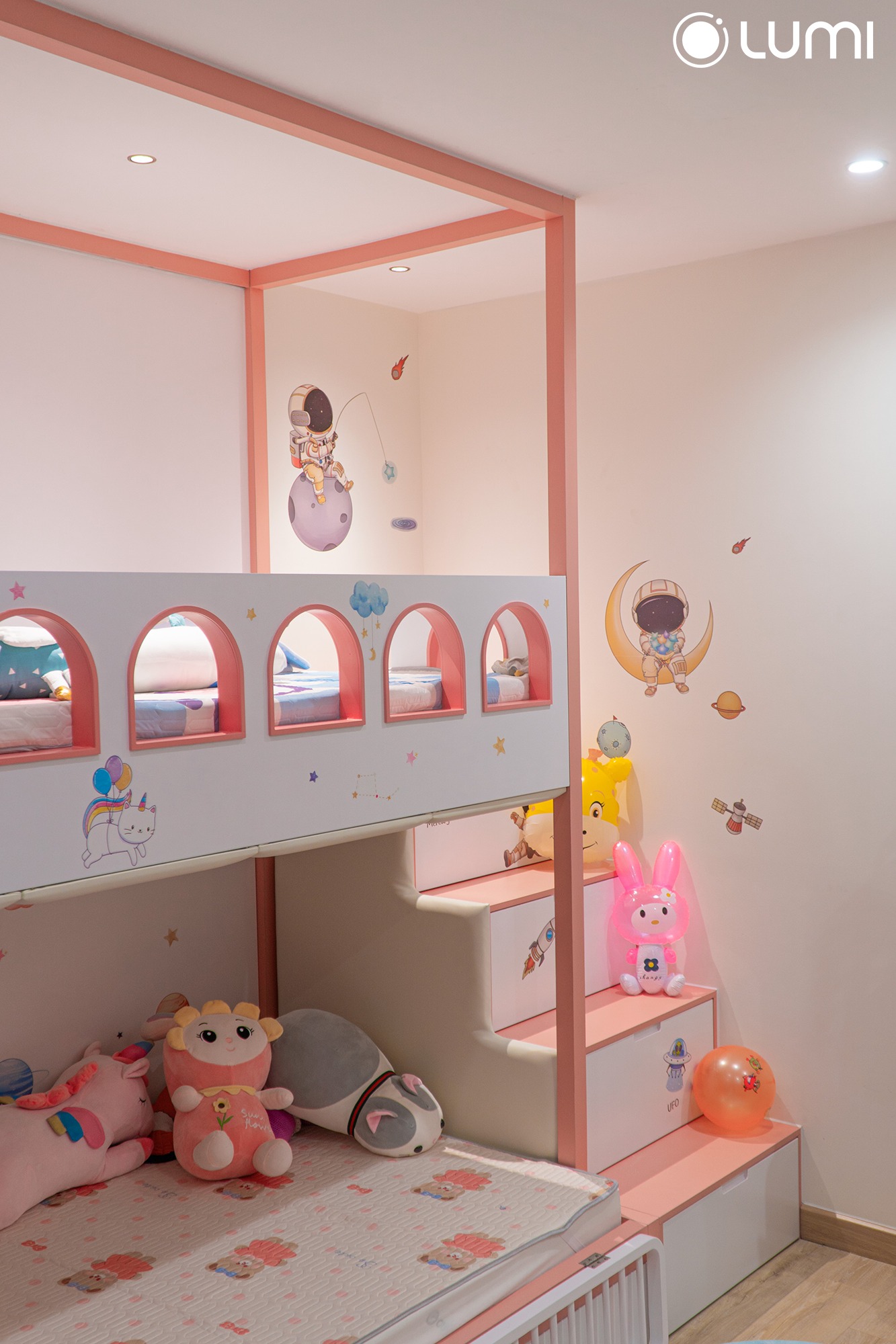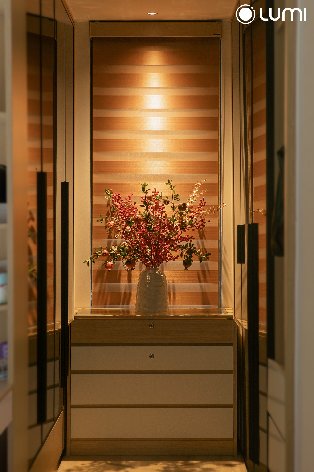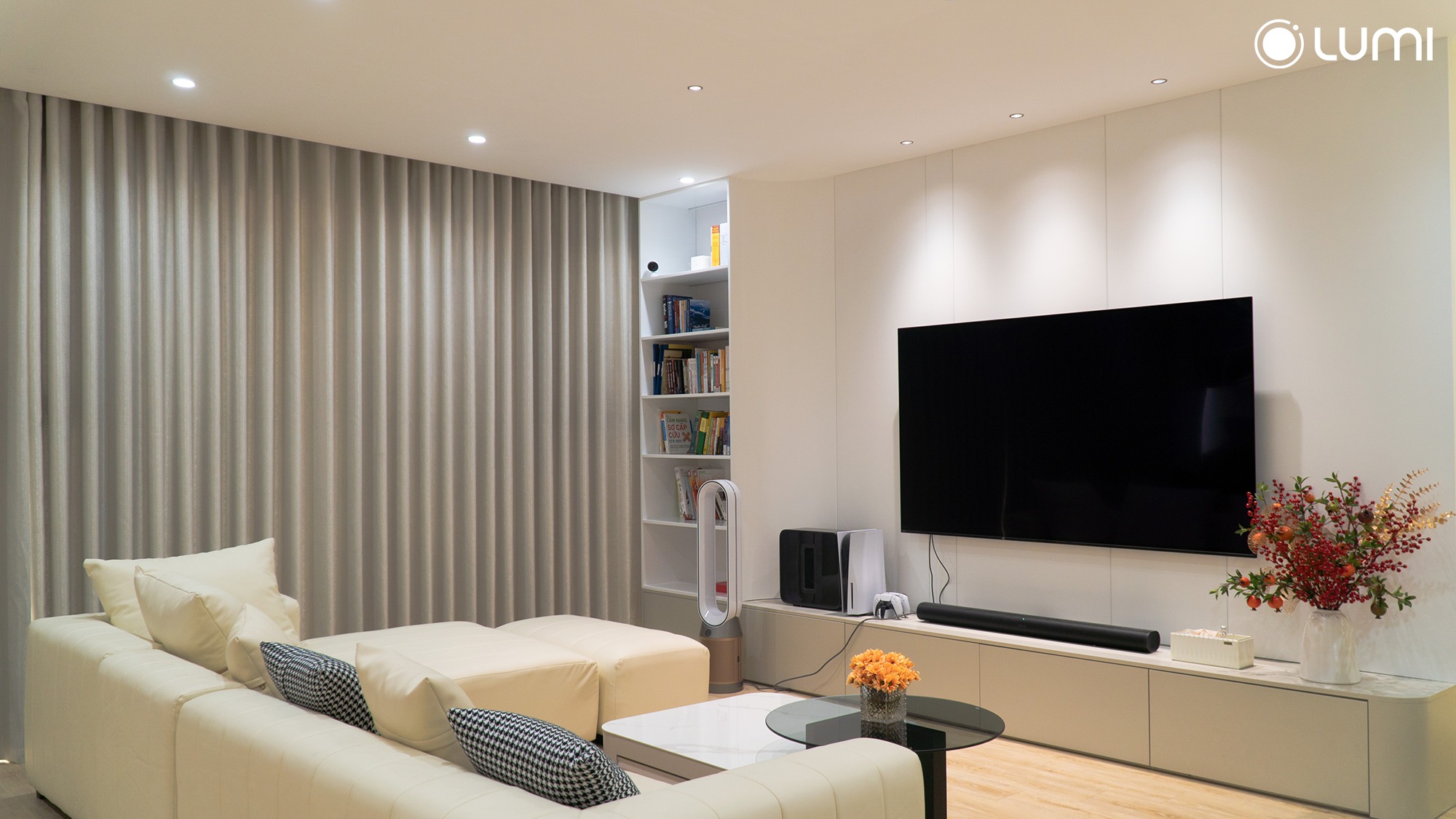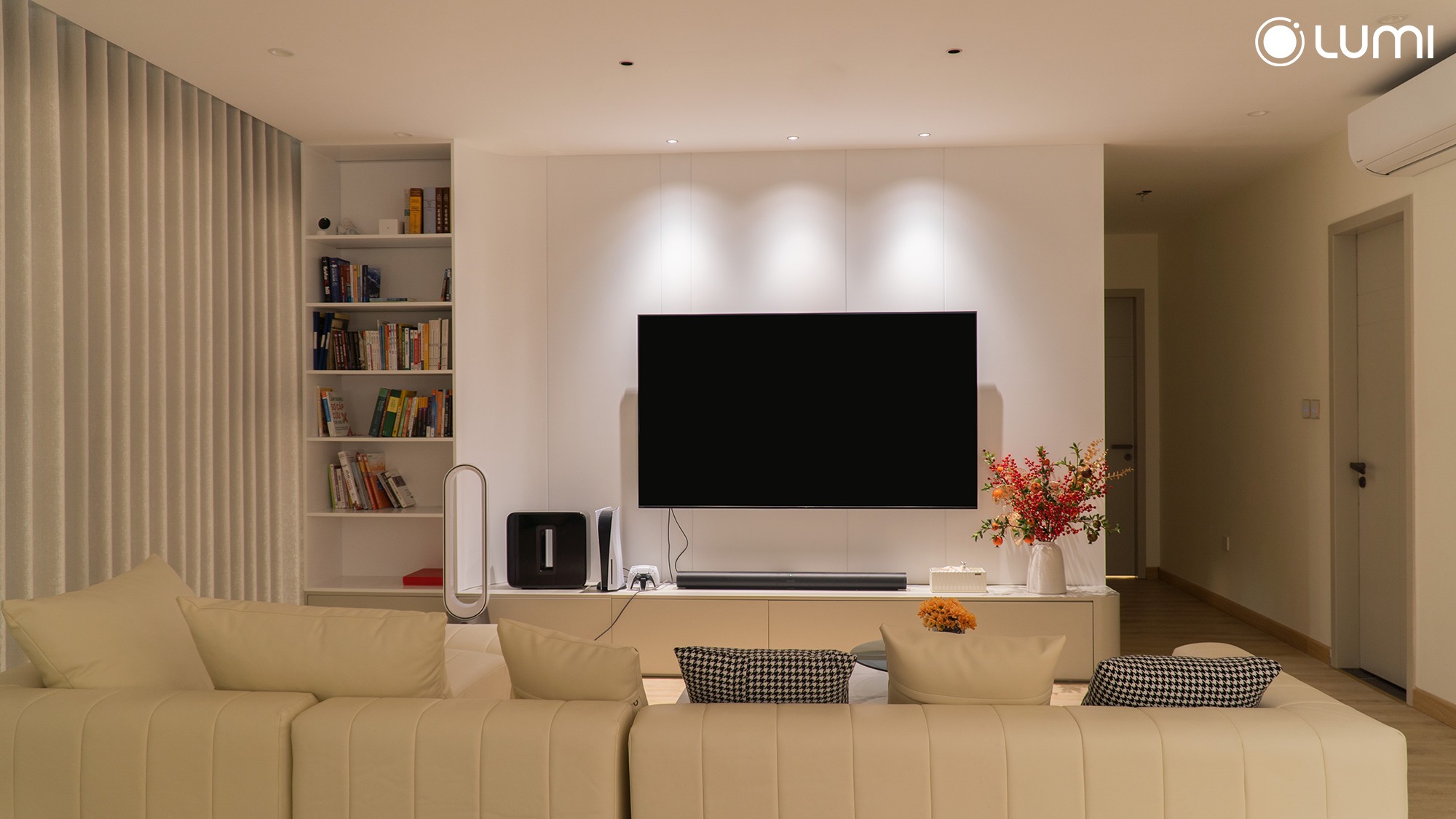 Vô cùng tâm đắc với các giải pháp chiếu sáng, gia chủ đã lựa chọn chiếu sáng thông minh từ Lumi cho cả căn hộ. Sự phối hợp linh hoạt giữa 2 loại đèn Spotlight và Downlight từ Lumi đã giúp căn hộ “khoác” lên mình một diện mạo mới, hài hòa giữa ánh sáng và nội thất, hơn nữa giúp không gian trở nên rộng thoáng hơn.