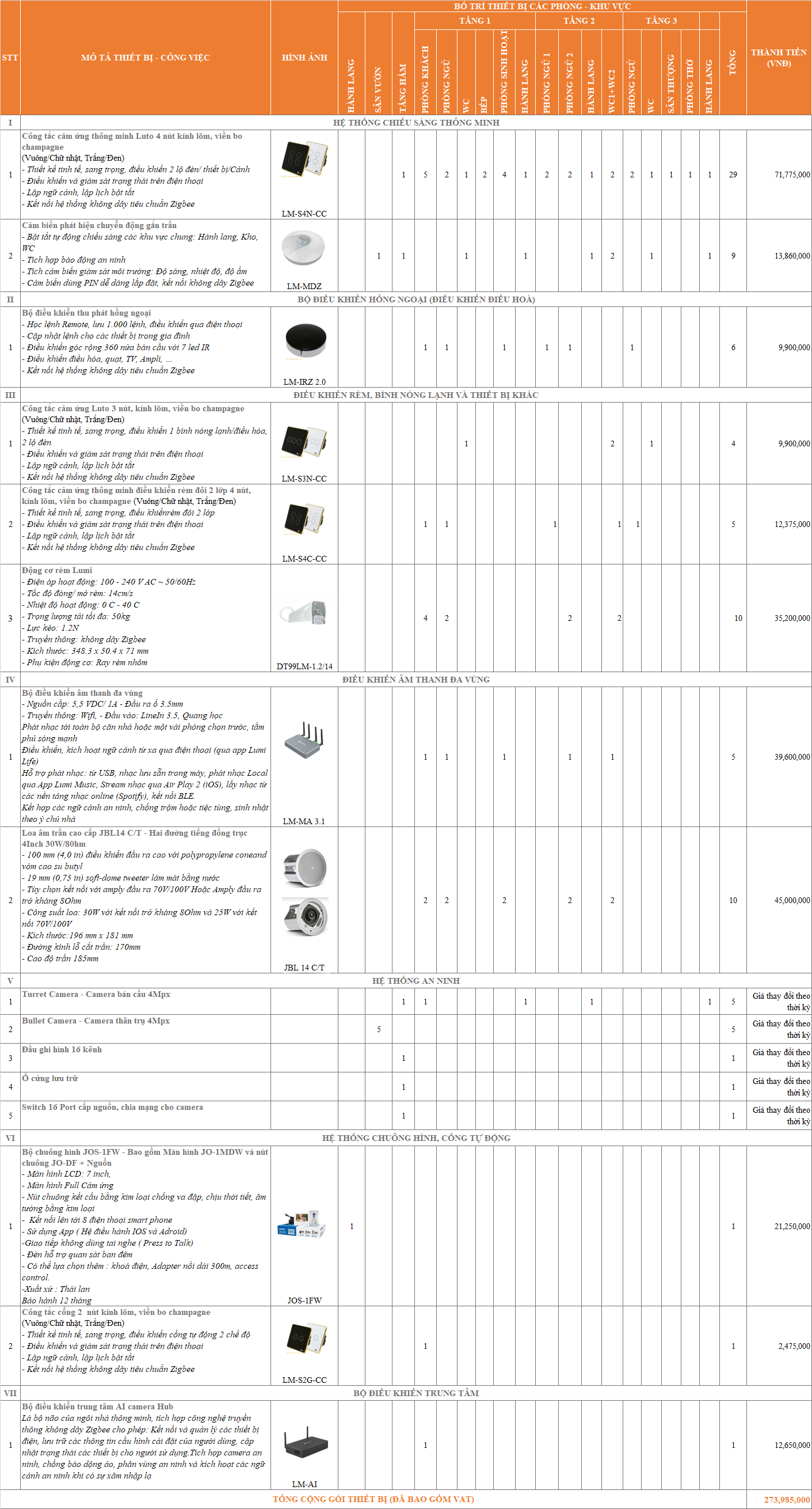 Chúng tôi hiện cũng chính là nhà phân phối của Lumi Việt Nam tại thị trường trong nước và xin giới thiệu tới Quý khách hàng Gói trọn bộ thiết bị Nhà thông minh LUMI LUXURY dành cho Biệt thự 3 tầng.